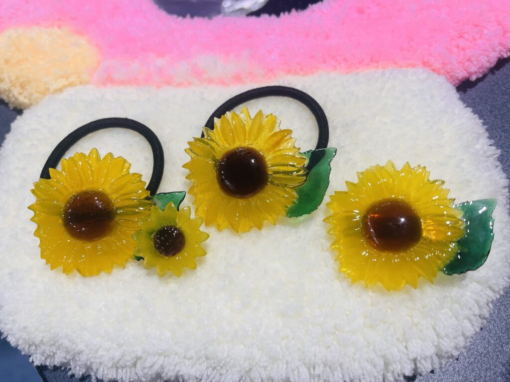 ヘアゴムとヘアピンやブローチにもなる2種類。