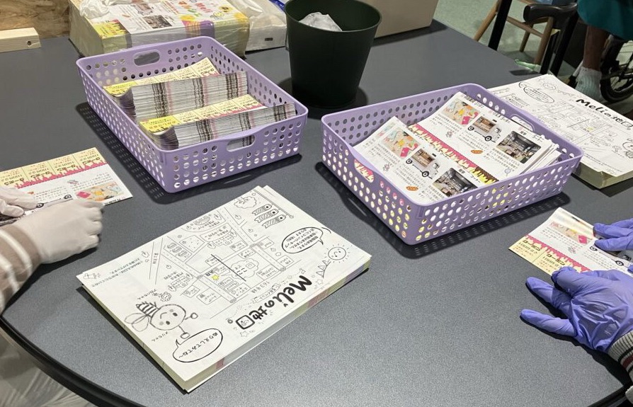 先週より利用者さんたちにもイベントの発表をしてチラシ折り作業をしてもらっています。